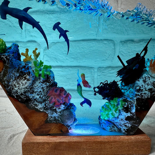 Hammerhead sharks, Mermaid resin lamp