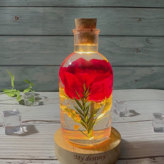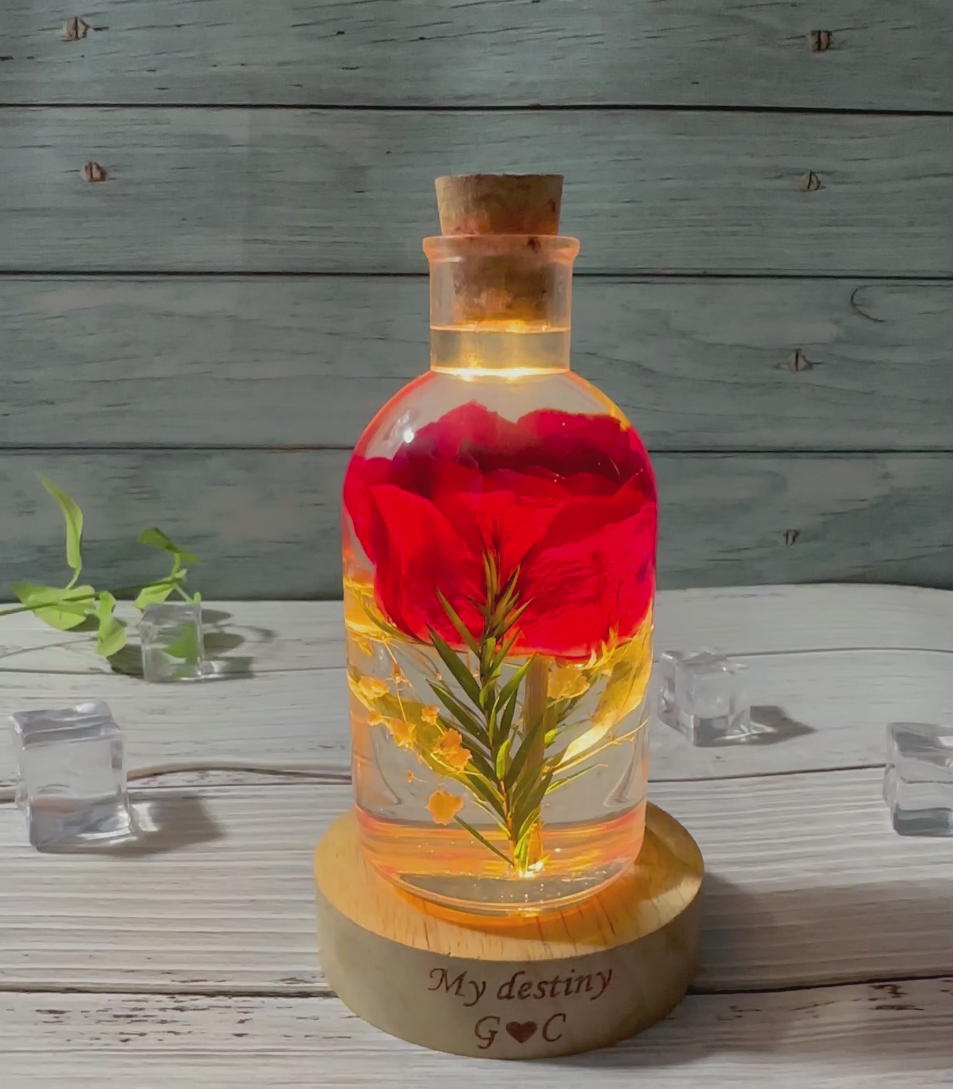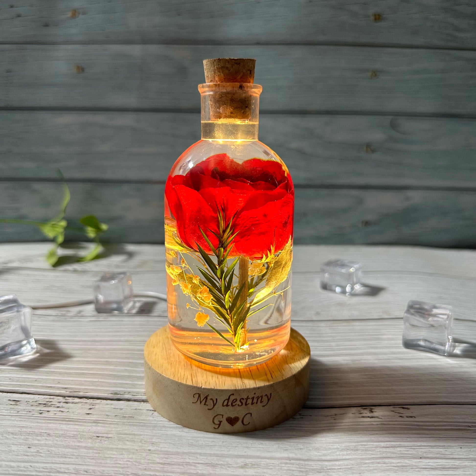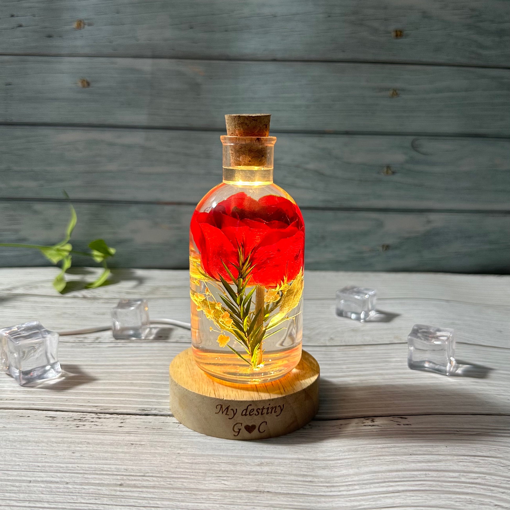Personalized Wood Engraved Resin Lamp – Rose Flower Night Light