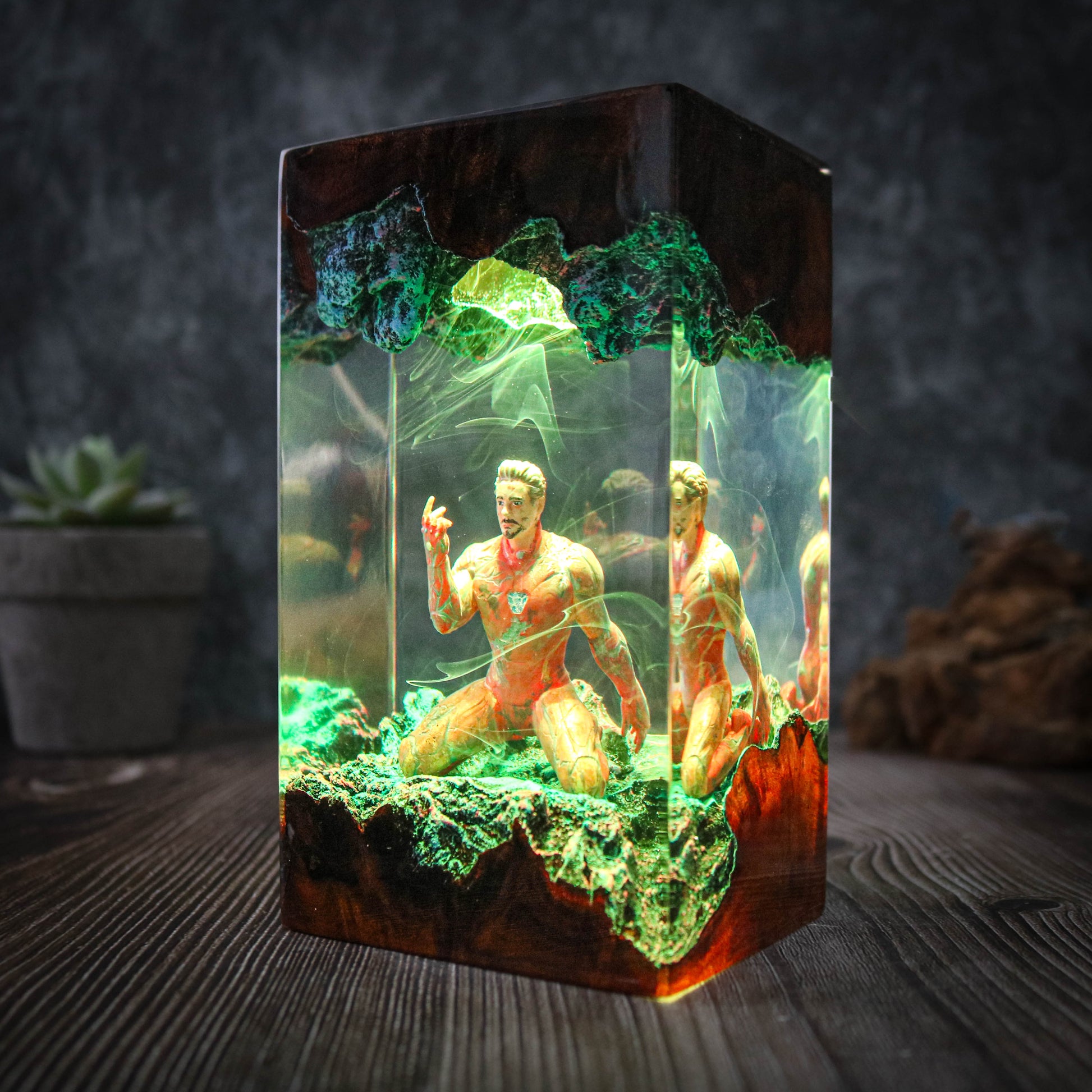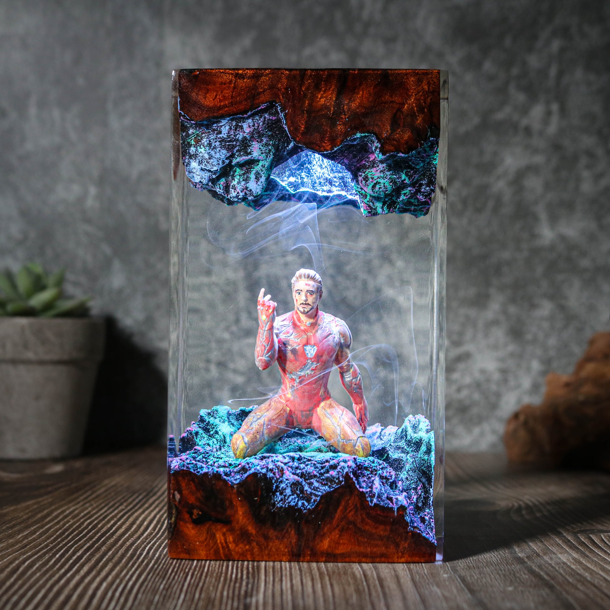 This handmade epoxy resin Iron Man lamp is a striking and unique decor piece for any fan. Crafted from high-quality resin and ancient wood, each lamp is meticulously created by skilled artisans. With its bold design, it adds both strength and sophistication to your space, making it the perfect Christmas gift for any Iron Man fan or collector.
